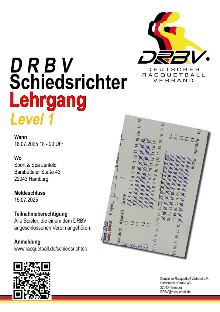 R A C Q U E T B A L L alles über den Racquetballsport in Deutschland R A C Q U E T B A L L alles über den Racquetballsport in Deutschland Bitte aktiviere JavaScript in deinem Browser, um dieses Formular fertigzustellen. Verein E-Mail-Adresse Name Name *VornameNachnameE-Mail-Adresse *VereinJa, ich nehme am DRBV Schiedsrichterlehrgang Level 1 am 18.07.2025 teilAbsenden