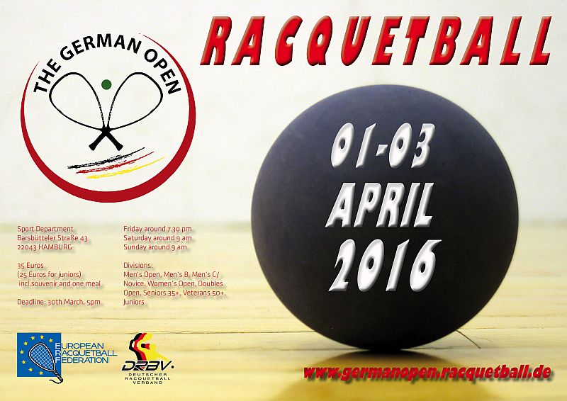 Lara Ludwig und Oliver Bertels (beide RBJ Hamburg e.V.) sind die Deutschen Einzelmeister 2016! Während Lara Ludwig gegen Renate Hartmann (Barsbüttel) die Oberhand behielt und hierdurch ihren vierten Titel in Folge gewann, siegte Oliver Bertels in diesem Jahr zum ersten Mal: Er besiegte im Endspiel Jan Lysakowski (ebenfalls Hamburg) mit 15-6 und 15-4 und ist damit erst der insgesamt siebte Titelträger in der Geschichte des deutschen Racquetballs. Gemeinsam mit seinem Doppelpartner Arne Schmitz verteidigte Bertels zudem ihren Doppeltitel und gewannen zum insgesamt vierten Male auch diese Kategorie gegen André Dietrich und Jan Lysakowski (Worms/Hamburg) mit 2-0 Sätzen.